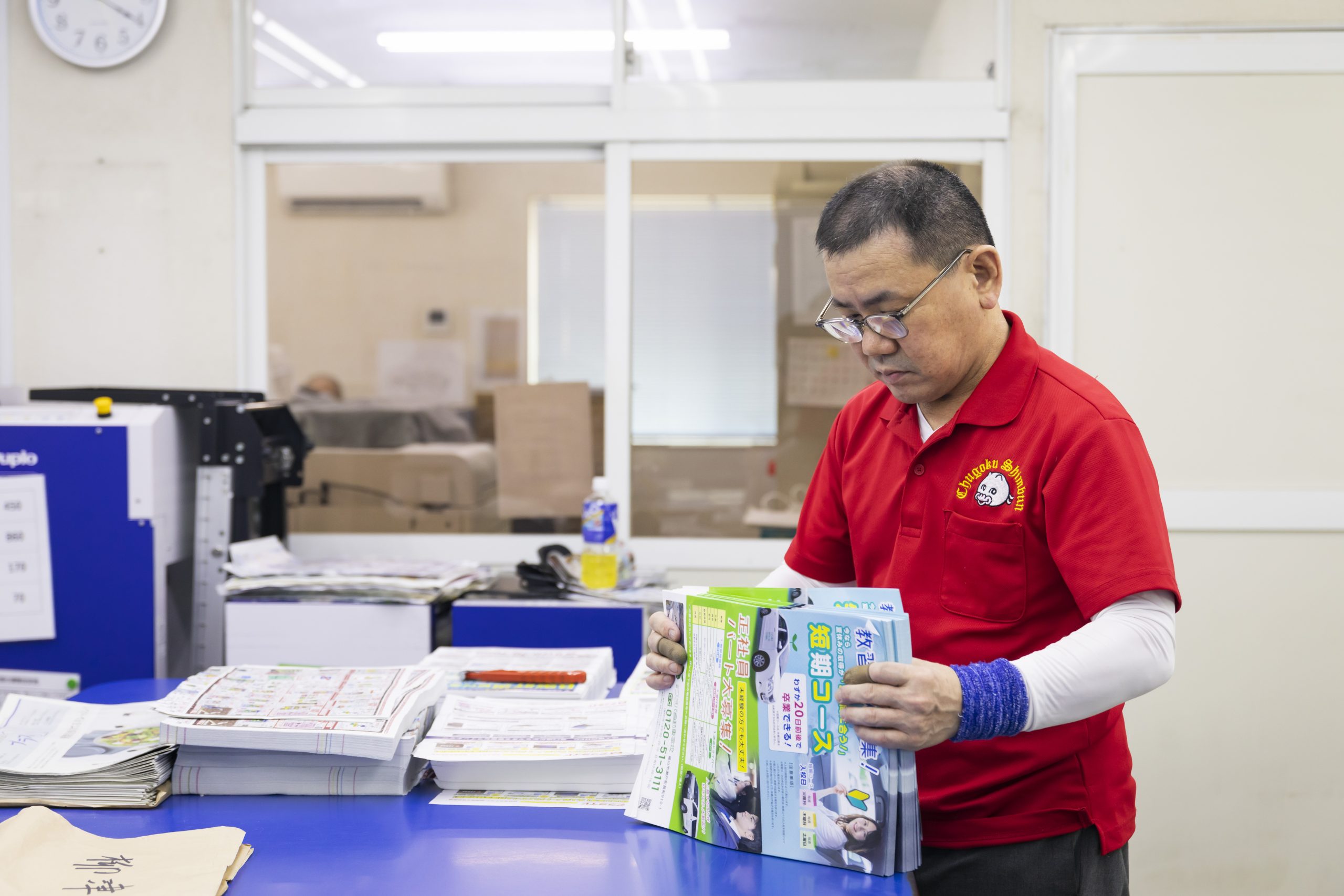 仕事の内容は、早朝は配達スタッフのフォローや管理です。午後は折込スタッフのフォローの後、新聞購読者への契約延長業務、月末月初には集金スタッフのフォローをします。